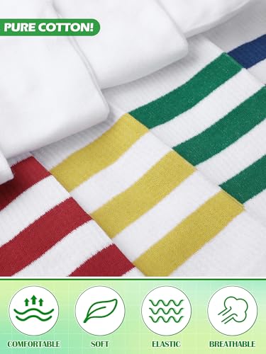 • Retro Style with a Modern Design: the classic 3 stripes design inserts a retro 80s vibe into the modern context, offering a variety of colors like white/ blue/ red, white/ green/ yellow, white/ yellow and white/ red; These tube socks with stripes will always give a fashionable juxtaposition that complements your individual style