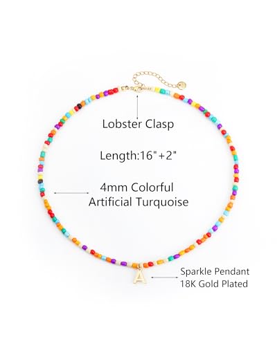 • MATERIAL: Beaded Initial necklace is made of colorful artificial turquoise beads, and the letter pendants are made of brass with gold plated, Hypoallergenic, not fading, lead-free and nickel-free, comfortable to wear and affordable.
