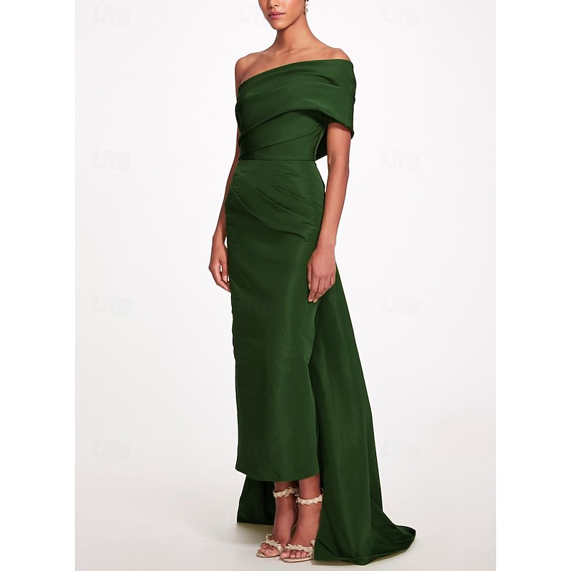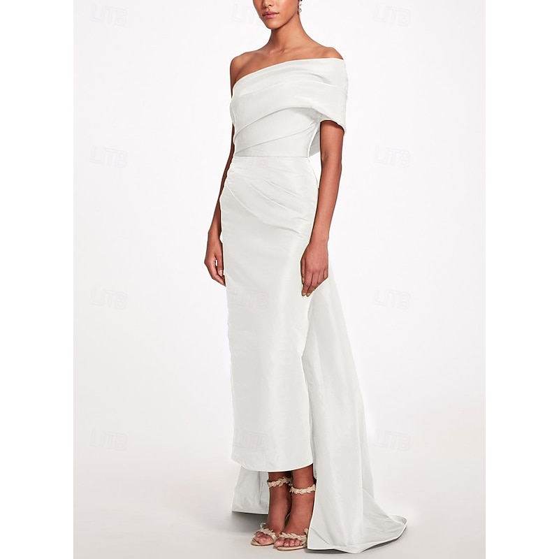 HOT ! Sheath Evening Gown Elegant Dress Beach Wedding Formal Prom Sweep / Brush Train Sleeveless One Shoulder Taffeta Backless with Bow(s) Strappy Masquerade Dress