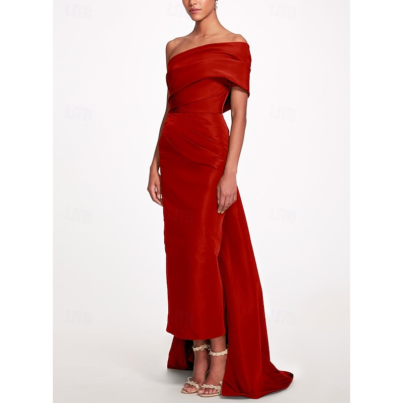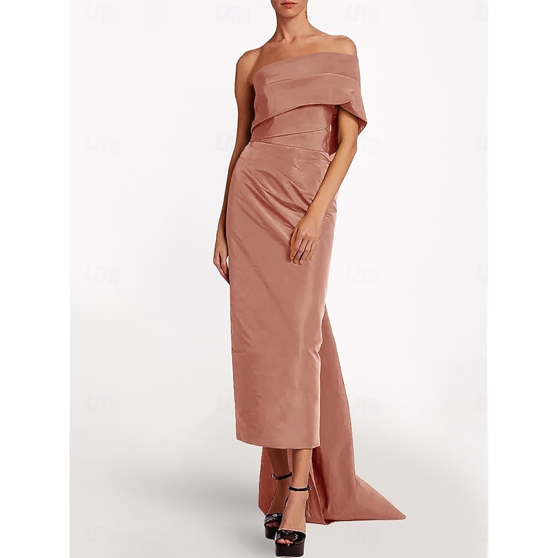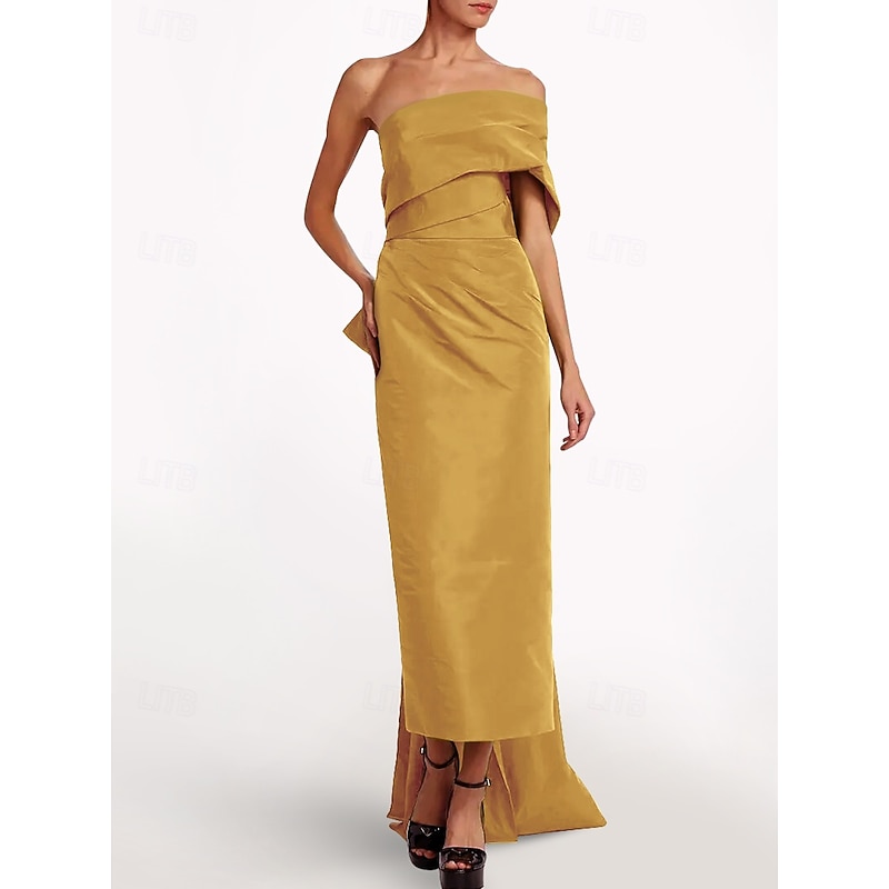 More information about Sheath Evening Gown Elegant Dress Beach Wedding Formal Prom Sweep / Brush Train Sleeveless One Shoulder Taffeta Backless with Bow(s) Strappy Masquerade Dress