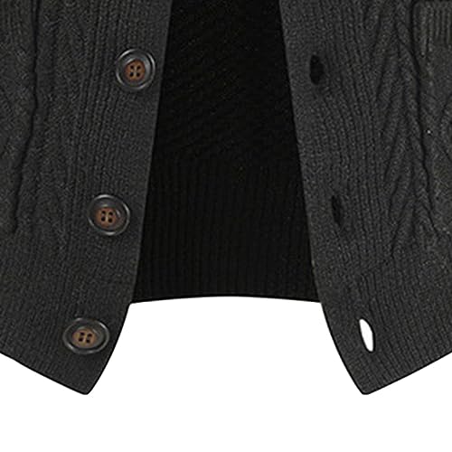 Mens Casual Shawl Collar Cardigan Sweater Button Down Open Front Knitwear Cable Knitted Ribbed Outwear With Pocket 5