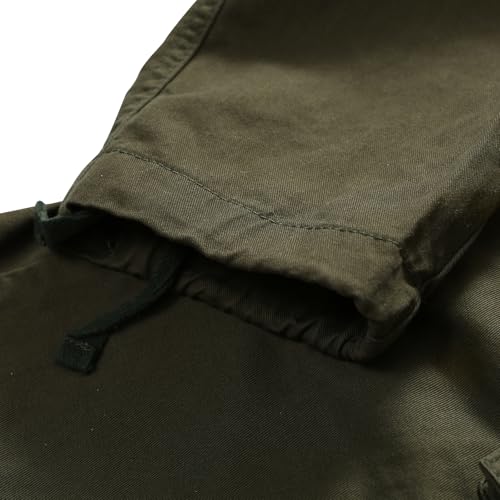 • Relaxed fit tactical pants with zipper closure. Sits at waist/Mid rise. Loose fit Khaki /green cargo pants. Straight leg. Drawstring tie inside the ankle and the waist for comfort fit.