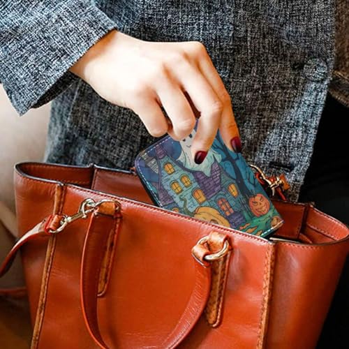 RFID Credit Card Holder Halloween Castle Bat Leather With Zipper Card Case Wallet for Women Girls 5