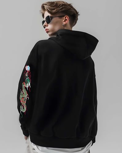 More information about Niepce Inc Streetwear Magpie Dragon Embroidered Hoodies for Men (Large)