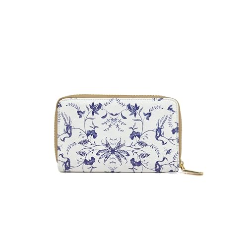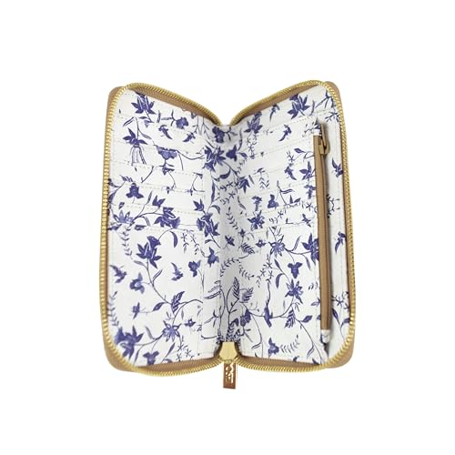 HOT ! DOSHI Zip Around Wallet - Kraft White & Blue Floral (Kraft Paper)