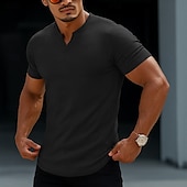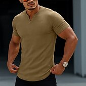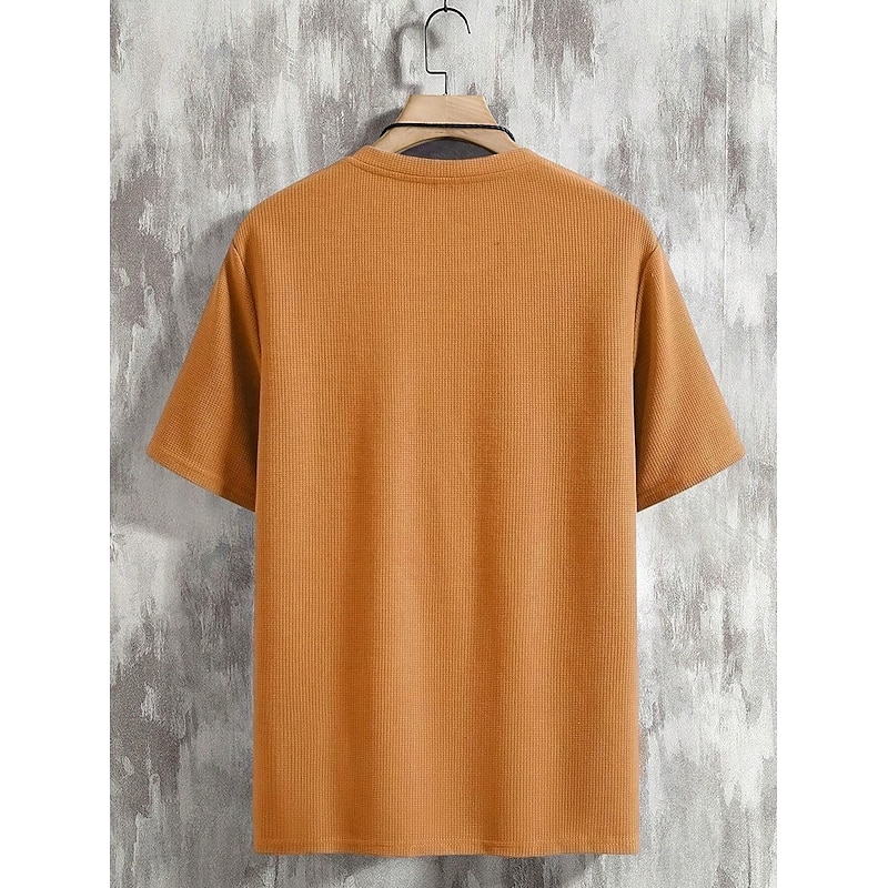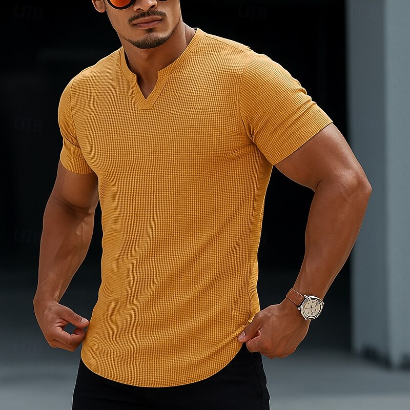 More information about Men's Waffle Tee T Shirt Hoodie Tee Top Short Sleeve Short Sleeves V Neck Summer All Seasons Solid Color Textured Fashion Designer Sporty Basic Street Casual Going out Black Green Orange Top Tee for