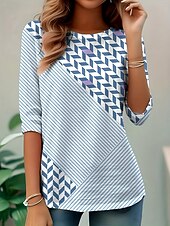 More information about Women's T Shirt Graphic Geometric Striped Vintage Stylish Casual Long Sleeve Crew Neck Round Neck Regular Tops Daily Print Blue Spring Fall Winter