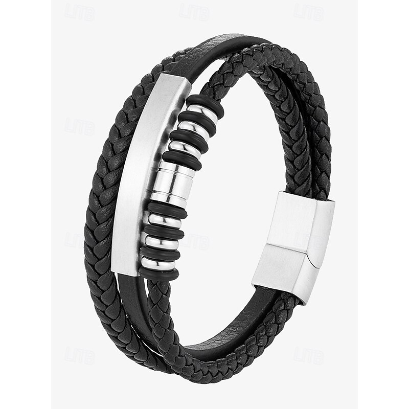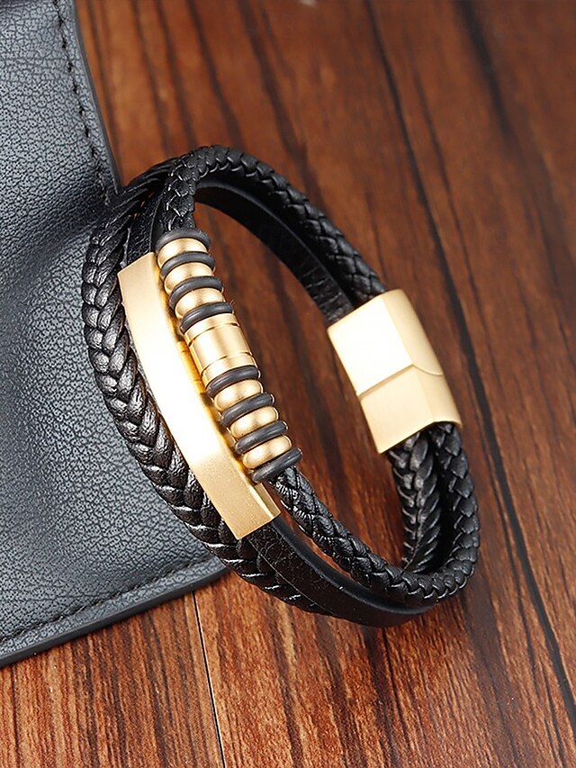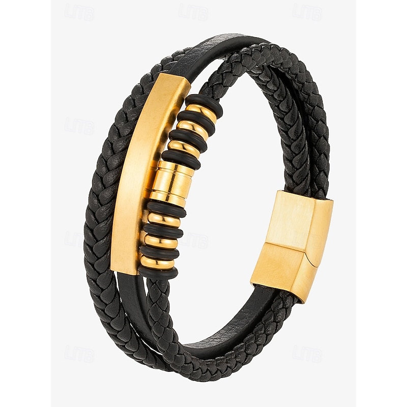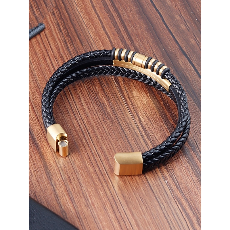 $18.99 - Men's Black Braided Faux Leather Bracelet with Gold Magnetic Clasp – Modern Casual Wristband with Beaded Accents, Perfect for Everyday Wear and Gifts 2025. Shop for cheap Men's Jewelry online? Buy at lightinthebox.com on sale today!