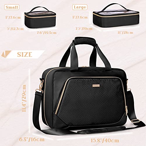 • 【5-IN-1 BAG】 The professional makeup bag contains 2 small cases(7.6”x5”x3”) and 2 large cases(11”x7.5”x3”) with inner dividers to hold your all cosmetics, personal care products and toiletries. (Whole bag dimensions 15.8”x6.3”x11.4”.)