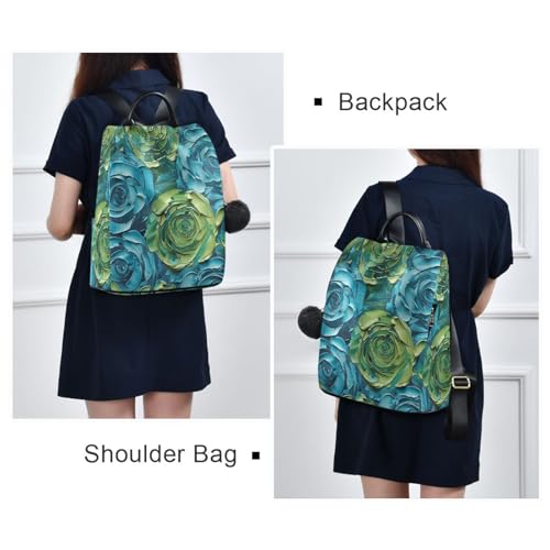 KLL Stereo Roses Blue-green 3d Stereoscopic Style Fashion carry on backpack casual backpack for women travel for Daily College Shopping with Pom-pom keychain 5