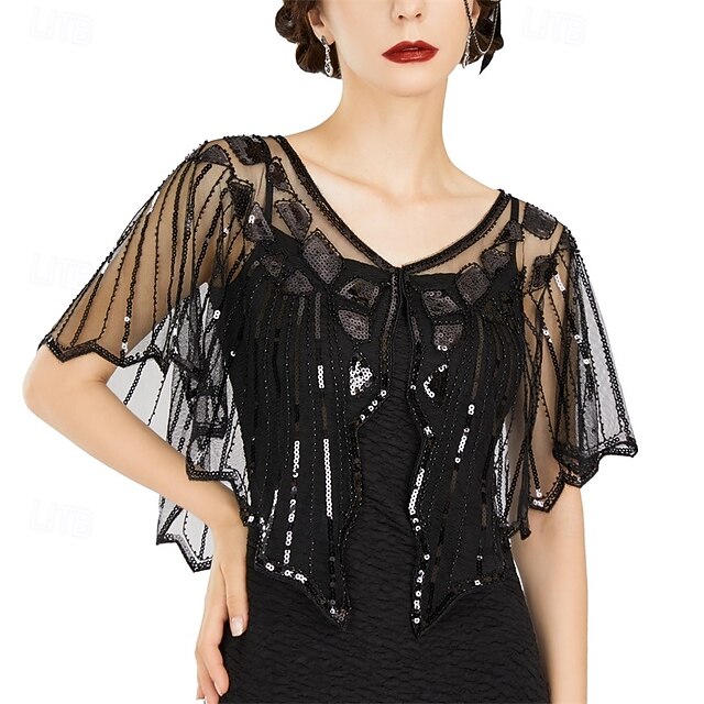 HOT ! SWEETV Women's 1920s Shawl Wraps,Sequin Beaded Flapper Evening Shawls for women formal/Party/Wedding/Formal/Harlem night