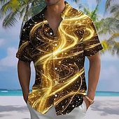 More information about Men's Geometric Waves Abstract Art Shirt Summer Shirt Button Up Shirt Short Sleeve Fashion Casual Outdoor Vacation Dailywear Summer Spring Turndown 3D Print Collared Shirts Front One Pocket Black
