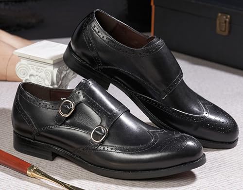 Santimon Mens Loafers Formal Dress Shoes Genunie Leather Wingtip Toe Monk Strap Loafer Business Casual Prom Wedding Suit Shoes Comfortable Fashion Tuxedo Shoes for Men 6