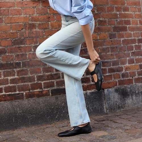 Elastic Strap Leather Ballet Flats for Women Round Toe Ballerina Shoes Comfortable Casual Mary Jane Flat Shoe 5