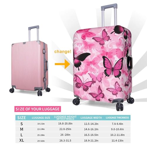 HOT ! Pink Butterfly Seamless Tile Tsa Approved Luggage Cover For 18-32 Inch Suitcases Scratch-Resistant Stretch Luggage Cover