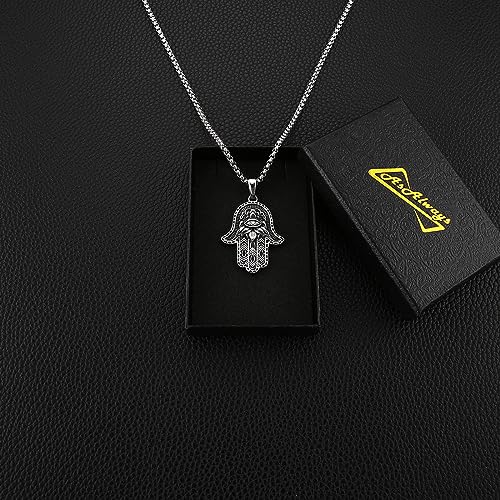 AsAlways Stainless Steel Hand of Fatima Pendant Vintage Amulet Charm Relief Carving Evil Eye Hamsa Hand Necklace Religious Gifts 5