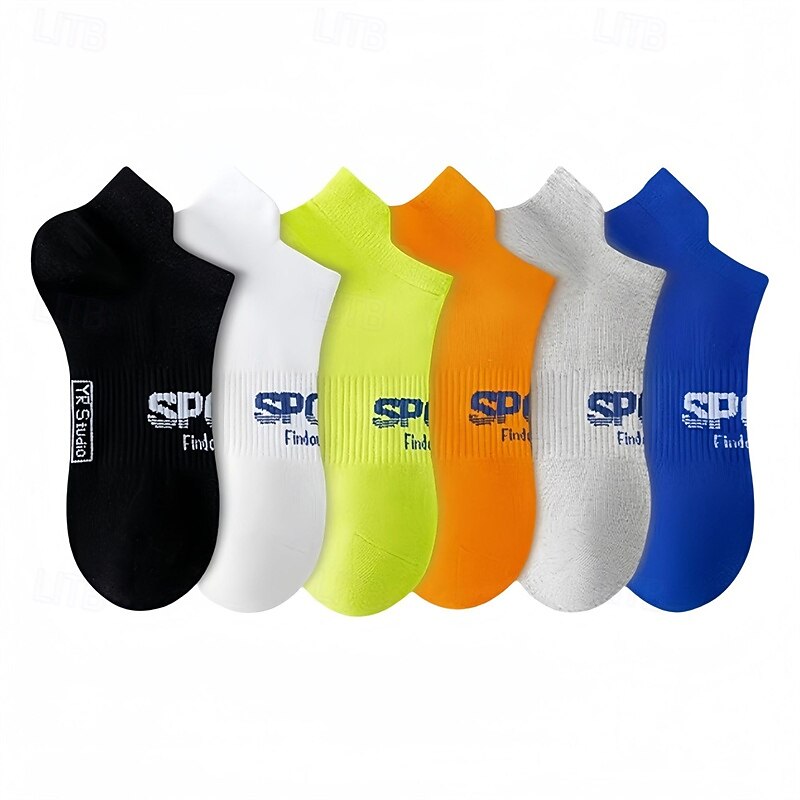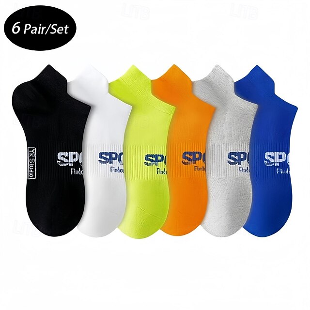 Men's 6 Pieces Multi Packs Socks Ankle Socks Running Socks Casual Socks Black White Color Letter Vacation Sports & Outdoor Daily Basic Medium Spring Fall Fashion Casual 20