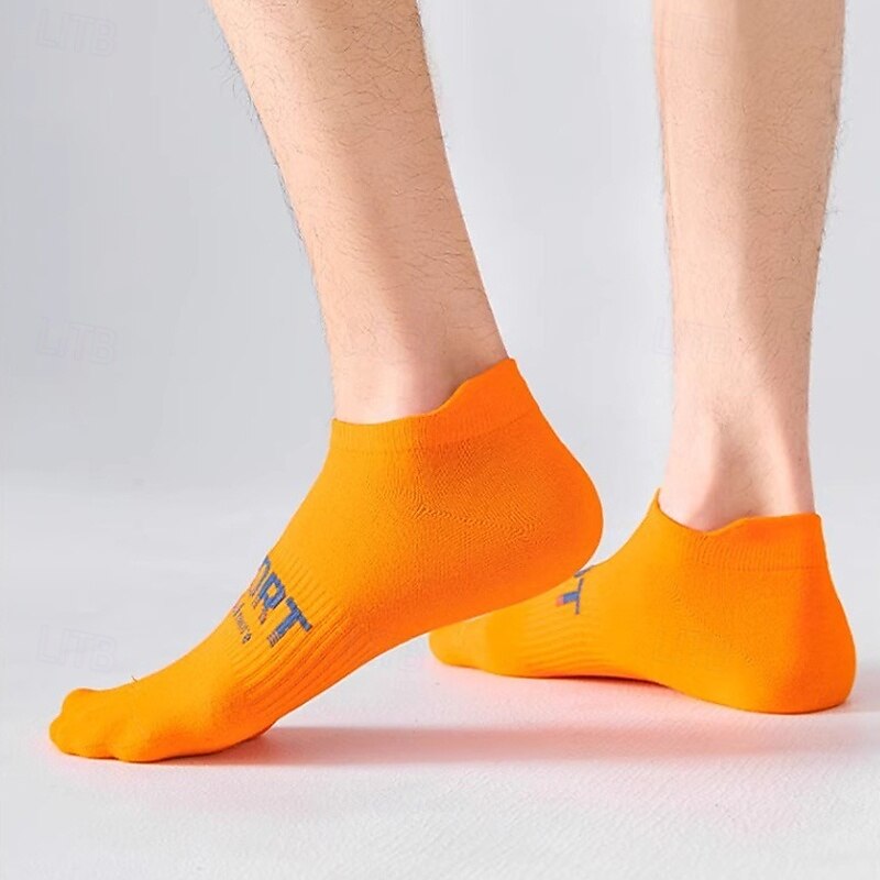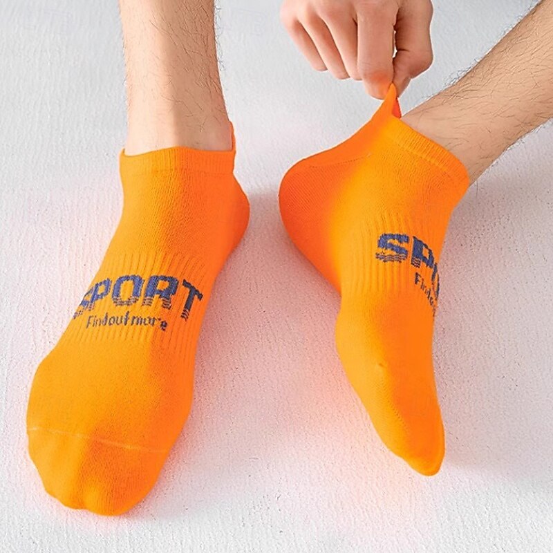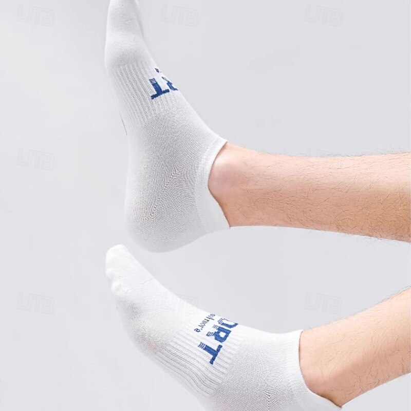 Men's 6 Pieces Multi Packs Socks Ankle Socks Running Socks Casual Socks Black White Color Letter Vacation Sports & Outdoor Daily Basic Medium Spring Fall Fashion Casual 5