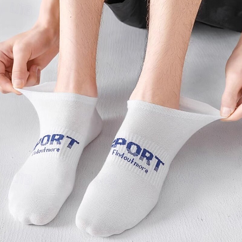Men's 6 Pieces Multi Packs Socks Ankle Socks Running Socks Casual Socks Black White Color Letter Vacation Sports & Outdoor Daily Basic Medium Spring Fall Fashion Casual 10