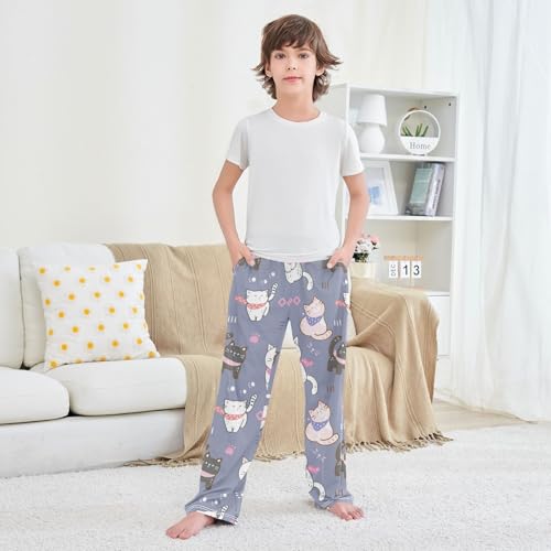 Boys' Pants Cartoon Cat Blue Long Bottoms Jogger Pants Elastic Waist Trousers with Pockets S-XL 7