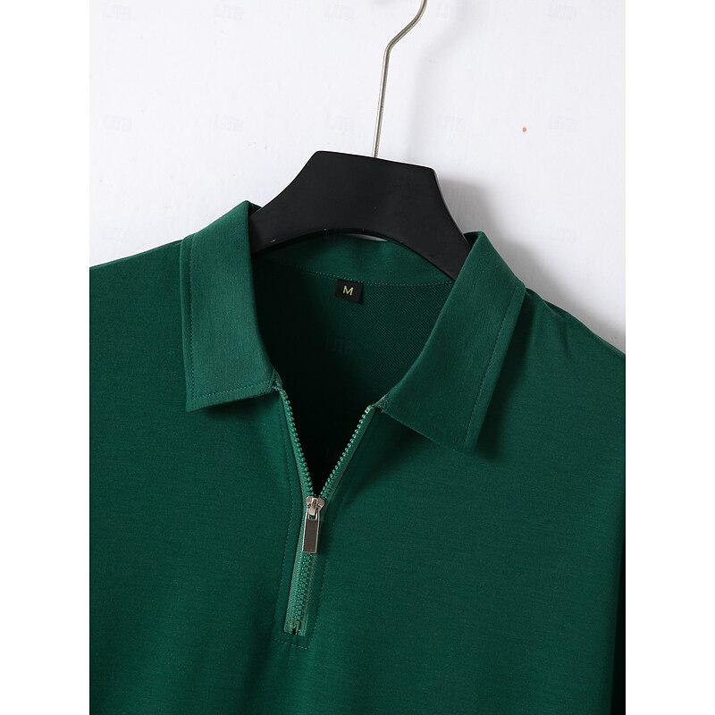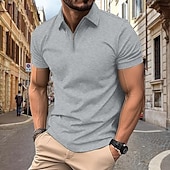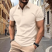More information about Men's Business Polo Golf Shirt Business Casual Quarter Zip Short Sleeve Solid Color Plain Zipper Summer Spring & Fall Black White Green Khaki Light Grey Business Polo
