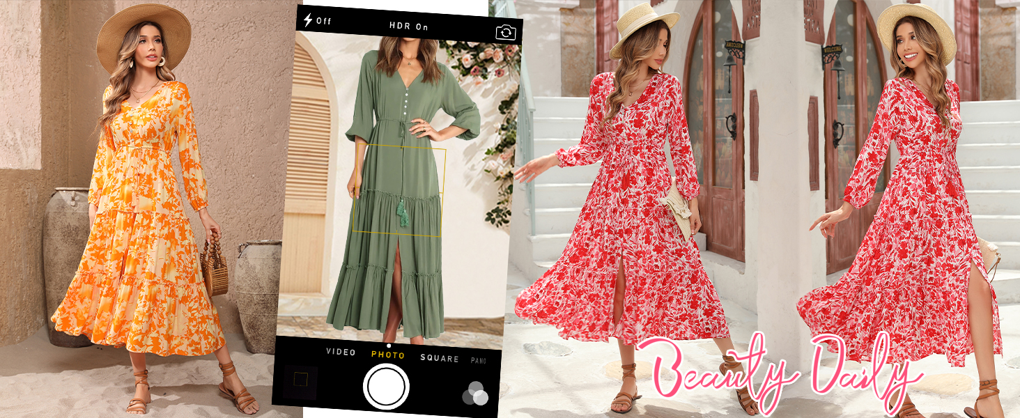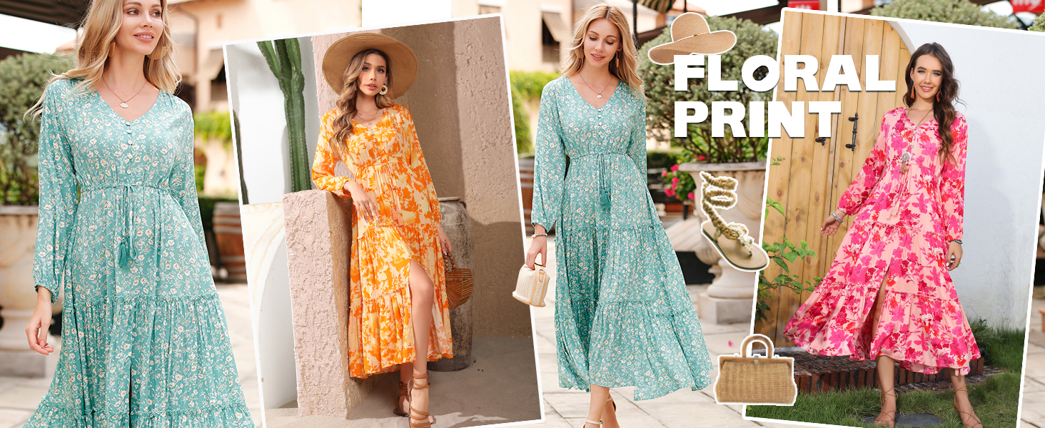 There Are Floral Print And Solid Color Two Pattern Styles To Choose From. These Two Styles Dresses Are Made Of Cotton And Rayon Fabric. Lightweight And Breathable. Soft To The Touch. Non-Stretchy. Unlined. You Can Wear It From Summer Into Fall With No Issues!R.Vivimos Women's Long Sleeve V Neck Floral Print Maxi DressWhether It's Floral Dresses Or Solid Color Dresses, They Are So Casual And Dressy. The Rich Floral Print Pattern Lend To The Dress A Bohemian flair, Saturated Solid Color Is Simple But Still Enough Dressy. This Tiered Ruffle Slit Maxi Dress Can Be Flattering On Different Body Types!R.Vivimos Casual Dresses for Women Empire Waist Drawtsring Tie Slit Dresst