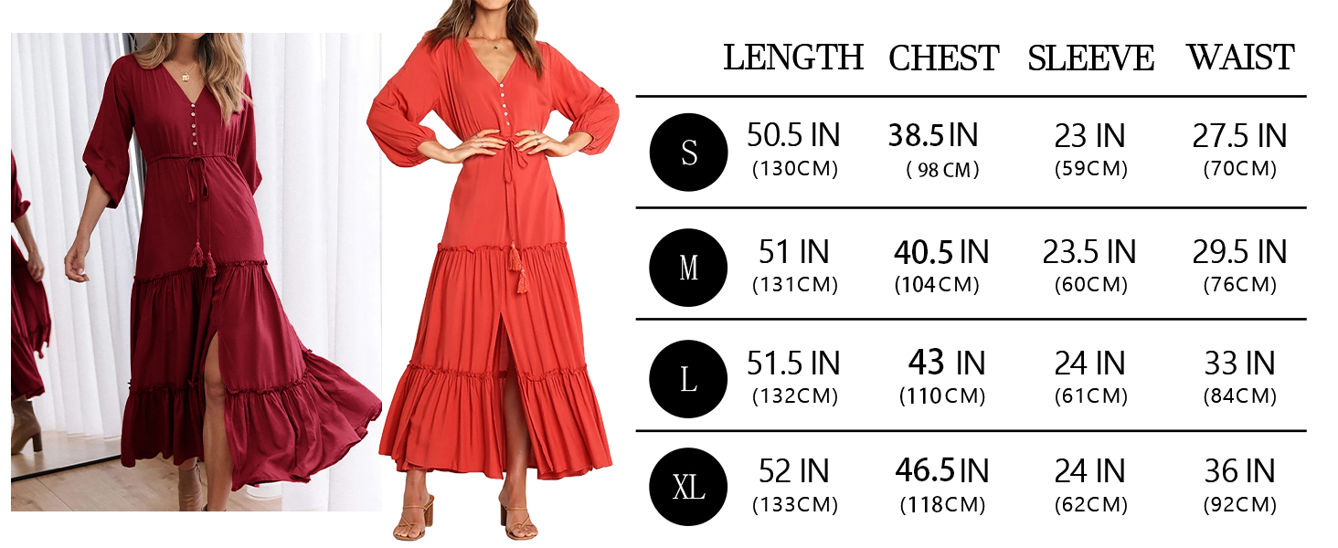 R.Vivimos Maxi Dress for Women Long Sleeve V Neck Drawstring Button Up Casual Split Flowy Dress