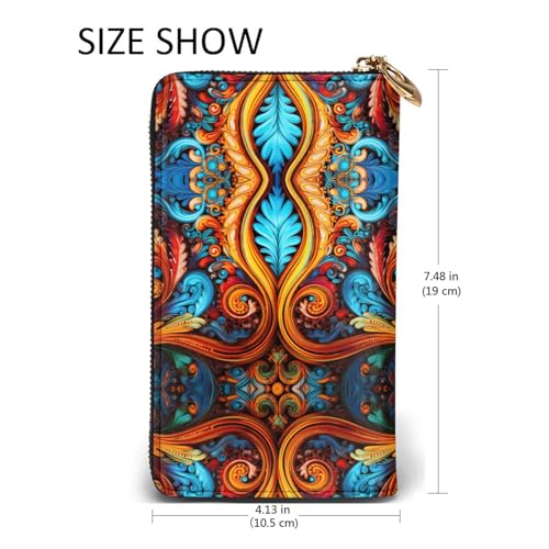 Stylish Brightly colored leaves Prints Leather Wallet - Long Clutch for Women, RDurable Material, 12 Card Slots, Zipper Compartments 1