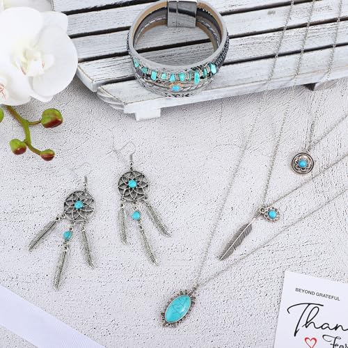 • Enjoy Flexible Fit: Bohemian turquoise earrings are suitable for most people, this boho turquoise pendant necklace is in proper length, this turquoise bracelet for women is adjustable, which is suitable for most women to wear