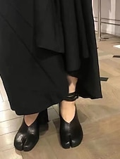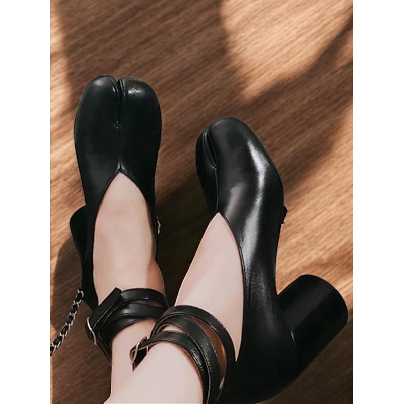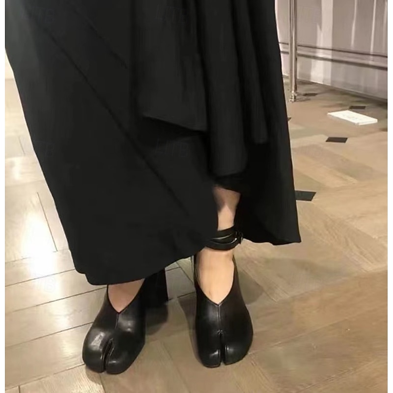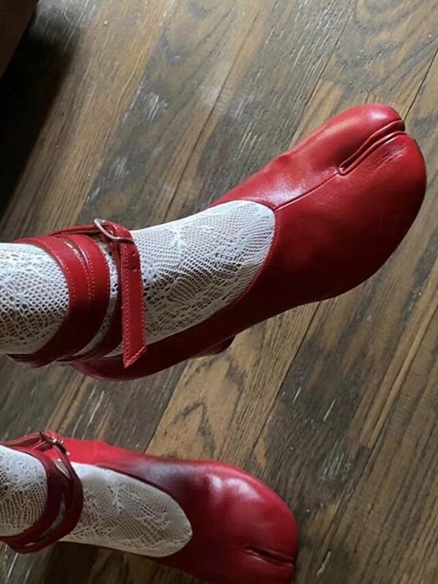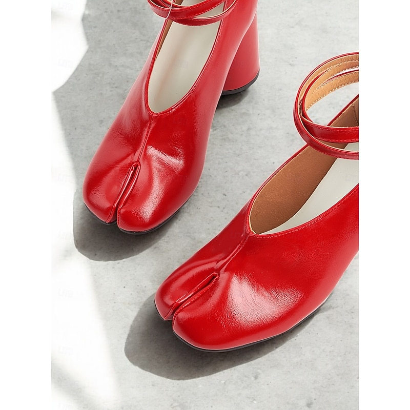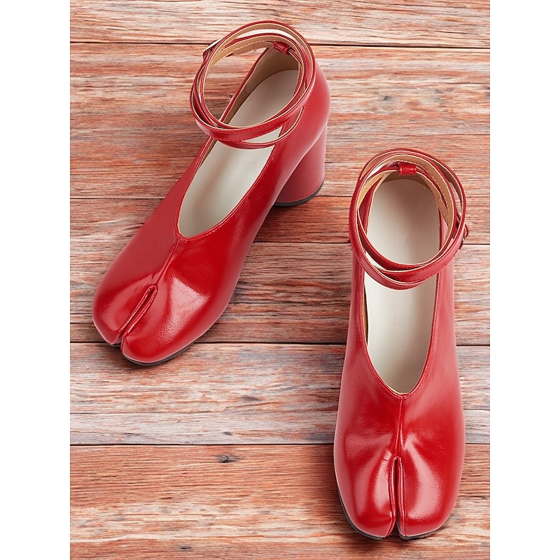 Highlights [Fabric and Material] These vibrant red Tabi Block Heel Shoes are crafted from premium PU for the upper, offering both durability and a luxurious texture. The lining is made from synthetic leather, providing comfort with every step. [Style and Fit] The shoes feature a bold split-toe Tabi design, merging retro and modern fashion effortlessly. Complemented by a block heel, they provide stable support and a stylish silhouette, perfect for making a fashion statement. [Design Highlights] With an elegant ankle strap and a secure buckle closure, these shoes blend classic charm with contemporary appeal. The unique round toe adds a playful touch, while the foam rubber outsole ensures a comfortable wear all day long. [Occasions] Ideal for all-season wear, these shoes transition seamlessly from spring to winter. Whether you're dressing up for a special event or adding flair to your daily outfits, these shoes are versatile enough for any occasion. [Size Guide] Available in a range of sizes from US5.5/EU35 to US9.5-10/EU41, it is recommended to select your usual size for the best fit.