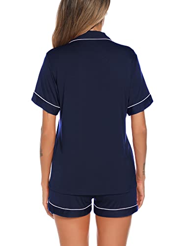 More information about Aamikast Button Up Pajama Set for Women Shorts Short Sleeve Knit Sleepwear 2 Pice Pjs Sets