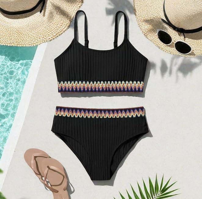 More information about Girls Swimsuit Two Piece Teen Bathing Suit High Waist Textured Bikini Set Woven Girls Swimwear 9-16Y