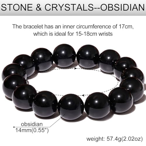 • Contains: An obsidian bracelet made of 14 mm semi-precious beads, packaged in a velvet pouch. It is equipped with spare elastic string and beaded needle, which is convenient to change the size of the bracelet according to your needs