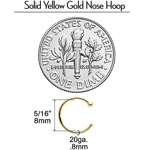 Body Candy Solid 18k Gold Nose Hoop Nose Ring, Real Gold Hypoallergenic Nose Piercing Jewelry - Handmade in USA by Master Jeweler, 20 Gauge 5/16" 5