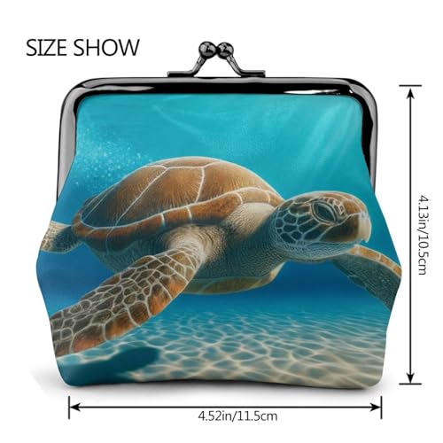 Pu Leather Buckle Coin Purse Turtle-Swimming-Sea Girls Kiss-Lock Change Purse Wallets 1