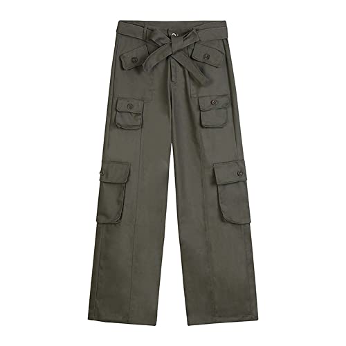 MEINVQIAOTI High Waisted Cargo Pants Women Straight Retro Street Green Baggy Combat Pants Women 7