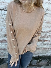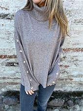 More information about Women's Sweater Fashion Streetwear Casual Pure Color Ribbed Turtleneck Knitted Long Sleeve Regular Tops Knit Outdoor Daily Weekend Gray Fall Winter