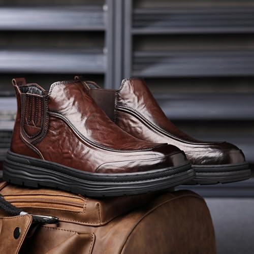 • 【Design】: mens chelsea boots With a round toe design and elastic collar, they can be slipped on and out the door instantly, saving time.