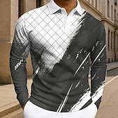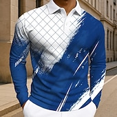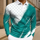 More information about Men's Geometic Line Polo Long Sleeve Polo Shirts Lapel Business Casual Athleisure Daily Wear 3D Print Buttons Spring Fall Winter Blue Purple Green