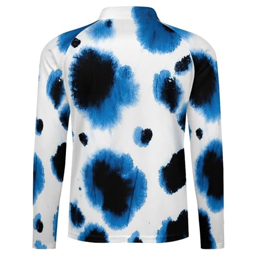 HOT ! Watercolor Leopard Blue Tie Dye Men's Rash Guard Long Sleeves Quick Dry Fishing Workout Shirts with Zipper