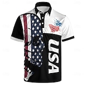 More information about American Independence Day Men's American US Flag Polo Short Sleeve Polo Shirts Collared Shirts Casual School Outdoor Daily Wear Home Wear 3D Print Summer Spring Fall Black