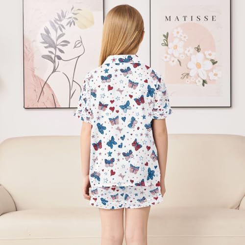 senya Butterflies Hearts Stars Satin Summer Pajama Sets Silk Short Sleeve Button Down Sleepwear 1