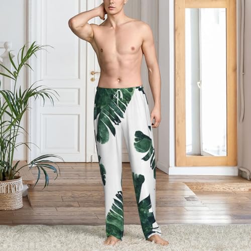 Palm Leaves Print Lounge Waistband Drawstring Mens Pajama Pants Fashion Custom Sleepwear 4