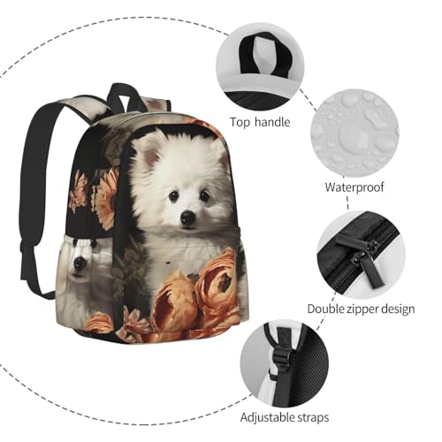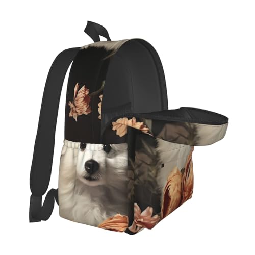 More information about Travel Backpack for Women Men Dog Sits Next to a Flower Casual Daypack Large Capacity Nurse Bag