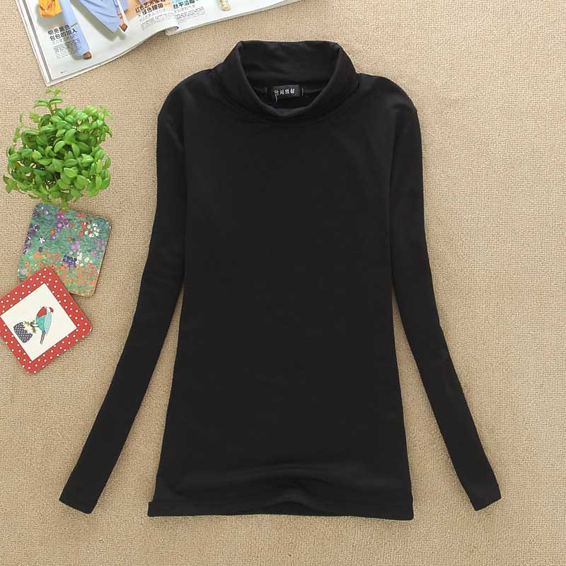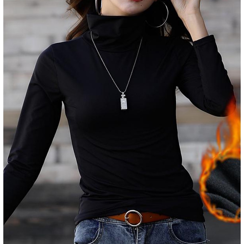 HOT ! Women's T Shirt Undershirt Bottoming Shirt Plain Basic Long Sleeve Turtleneck High Neck Regular Tops Daily Weekend Turtleneck burgundy plus velvet turtleneck black fleece Turtleneck coffee fleece