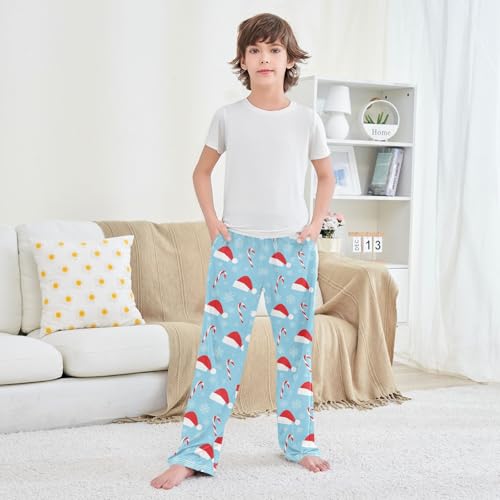 Boys' Pants Christmas Santa Hats Candy Blue Long Bottoms Jogger Pants Elastic Waist Trousers with Pockets S-XL 4