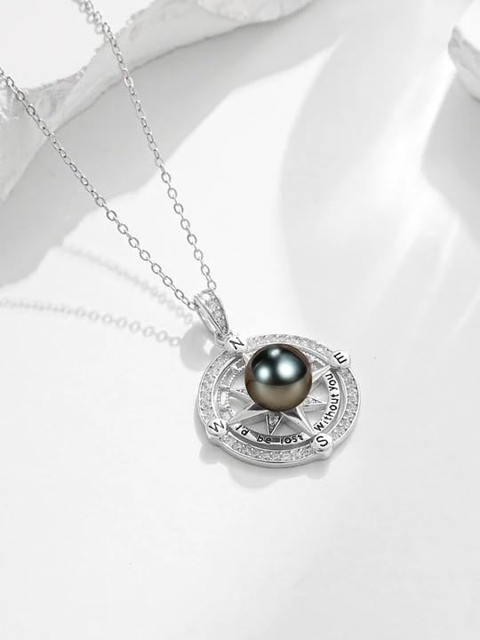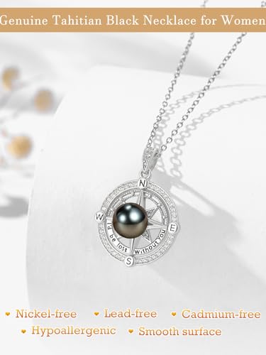 AAAAA Tahitian Black Pearl Compass Necklace For Women,925 Silver Saltwater Pearl Jewelry,Wedding Anniversary Birthday Gifts for Her Wife Mom Daughter Grandma Sister 5