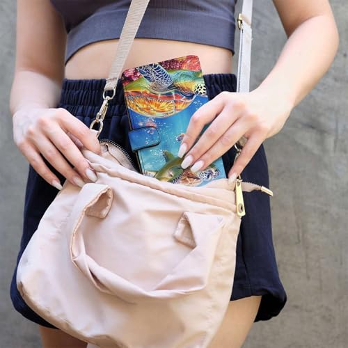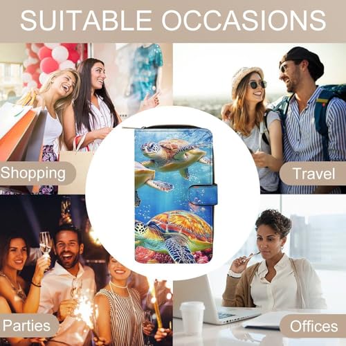Colorful Sea Turtle Long Wallet PU Leather Credit Card Holder Durable Zippered Purse Clutch Wallet 6