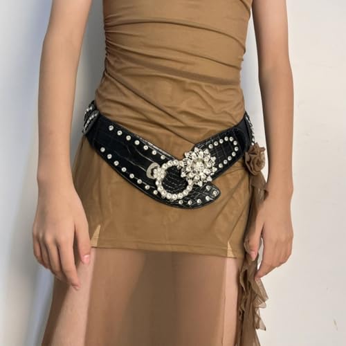 • Elevating your charm with our rhinestones embellished wide waist belt, feature a unique combination of sparkling rhinestones and intricate stitching for luxurious and fashionable look.