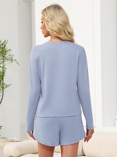 ANRABESS Womens Long Sleeve Pajama Sets 2025 Fall 2 Piece Outfits Lounge Matching Short Set Striped Pjs Loungewear Sleepwear 2